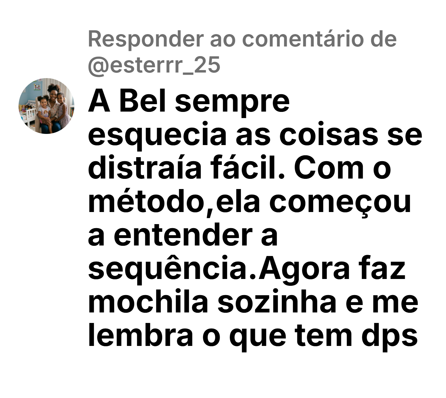✅ criança olha o quadro✅ entende o que vem depois✅ coopera naturalmente